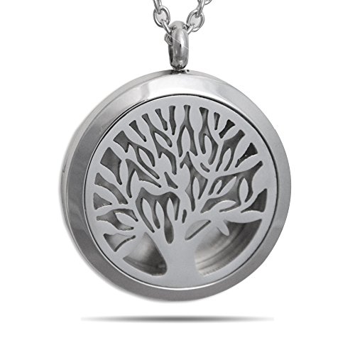 Essential Oil Diffuser Necklace – Tree of Life Stainless Steel Aromatherapy Pendant
