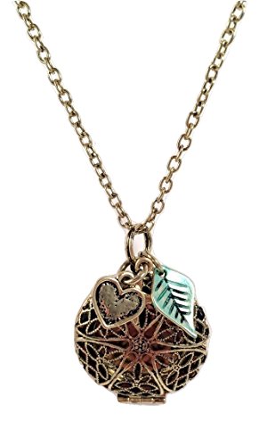 Adjustable Antique Finish Essential Oil Diffuser Aromatherapy Necklace W/Charms & Three Leather Pads