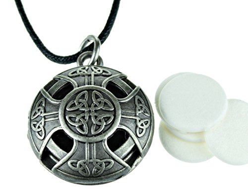 Celtic Cross Pewter Aromatherapy Essential Oil Diffuser Necklace Locket Pendant Jewelry