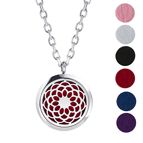 Premium Aromatherapy Essential Oil Diffuser Necklace Sunflower Locket Pendant, Hypo-allergenic 316L Surgical Grade Stainless Steel Jewelry with 24