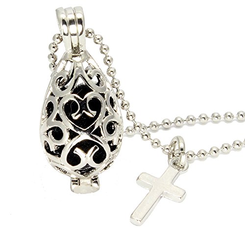 AromaRain Filigree Teardrop Essential Oil Necklace With Cross, Free Chain and 5 Poms