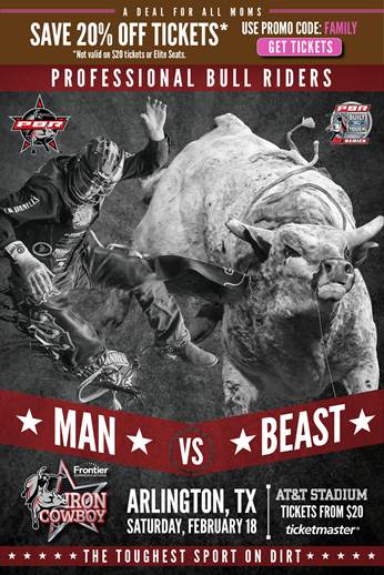 “We are thrilled to bring The Iron Cowboy, one of the PBR’s Majors and among the season’s most anticipated events, back to Arlington for our eighth year,” PBR CEO Sean Gleason said. “There’s no better venue in the world to cheer on our riders than AT&T Stadium, and we look forward to the Iron Cowboy in the heart of Texas.”