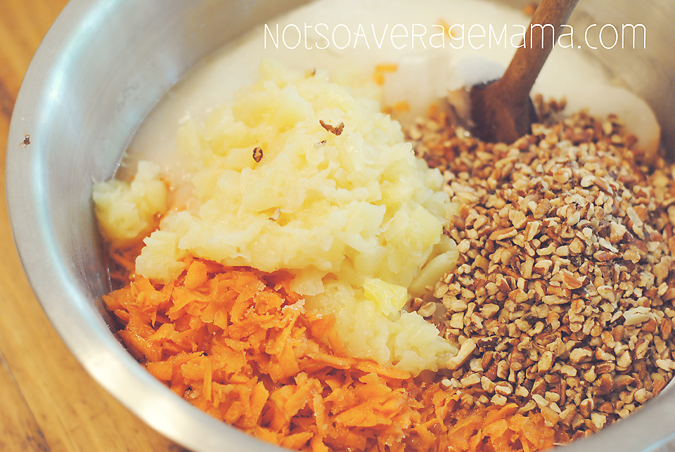 - Preheat oven to 350°F. Mix flour, soda, salt and spices in large bowl. Add remaining ingredients; mix well. Pour into greased and floured 13x9-inch baking pan.