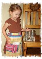 I picked up a bag of what I assumed was usable sheets, only to get them home and discover some had been cut. Oh well, now I have fabric as well. First project from the sheets was this cute lil children’s half apron. It has a 2 section pocket on the front for stashing lots of stuff!